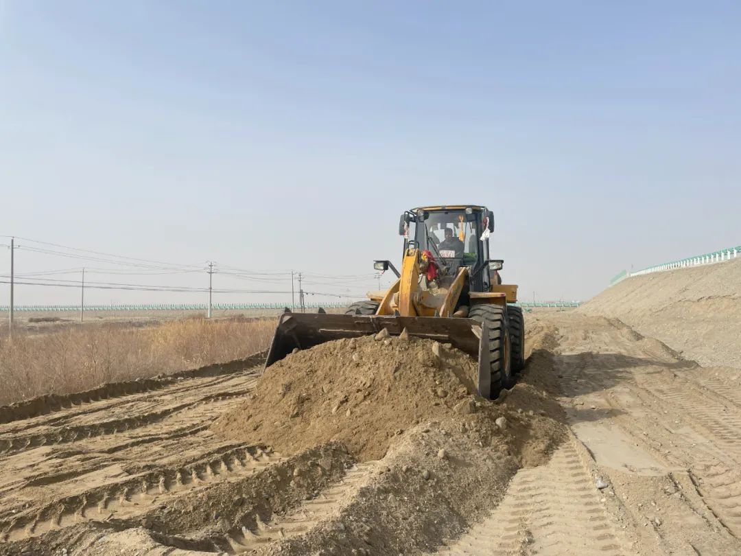 近日,在G218线若羌县北互通至县城路段上,推土机、压路机、平地机等机械车辆来回穿梭,轰隆隆的声音不断传来,施工人员干劲十足,现场一派繁忙景象。