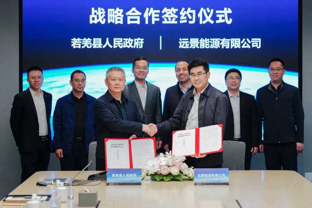 签约仪式上,县委副书记、常务副县长周文辉与远景能源中部区域公司总经理高富春分别代表双方签署合作框架协议书。根据协议,远景能源有限公司将在若羌投资60亿元,建设智能风机整机制造、转运基地,集中式共享储能电站等项目,使之成为巴州创新支柱产业及战略新兴产业,实现储能产业基地、智能风机装备及制造物流基地、智慧能源产业链配套基地、智能物联网云中心及大数据运维中心等产业快速跨越式发展。