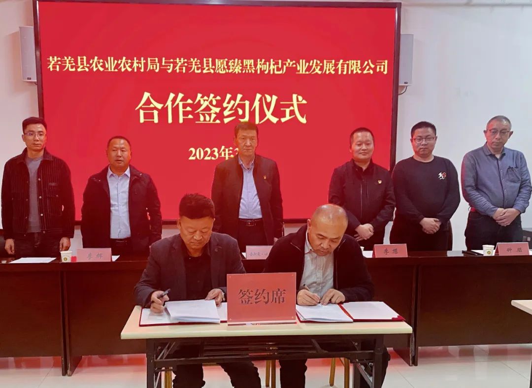 签约仪式上,若羌县农业农村局相关负责人与愿臻黑枸杞产业发展有限公司代表签订了合作框架协议。