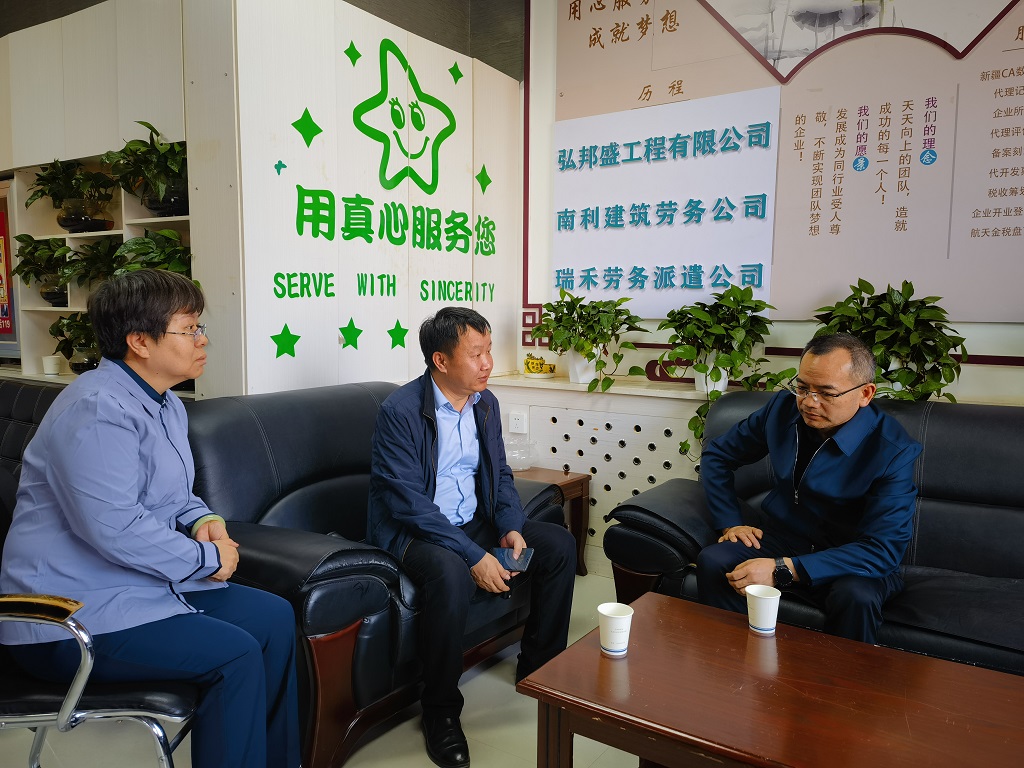图为 王光明一行与企业负责人亲切交流