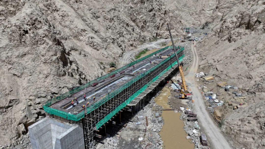 该项目执行经理左雷谔说:“中铁十四局从2022年8月20号进场,已经完成项目总占比约52%左右。项目目前投入人员700多人,机械185套,桥梁支架38套,保证今年10月30号顺利达到通车条件,为若羌经济高质量发展贡献一份力量。”