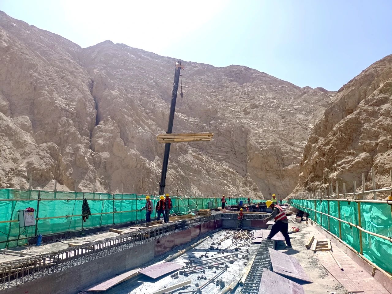 6月4日,在若羌河资源路项目K16+685桥施工现场,各种机械设备有序作业,工人们正在进行现浇箱梁的顶板施工等工作,全身心投入各自岗位,保障各项工作有序推进。