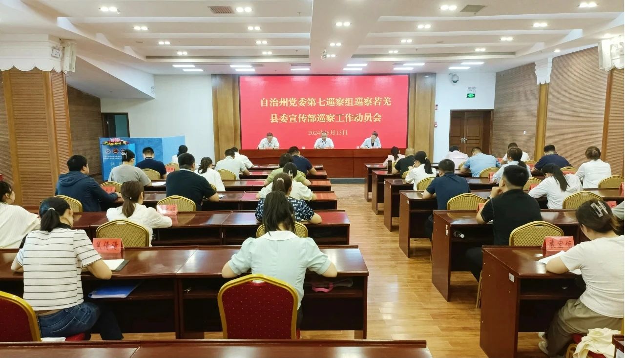 根据自治州党委巡察工作统一部署,2024年6月13日,自治州党委第七巡察组提级巡察若羌县委宣传部工作动员会召开。会前,自治州党委第七巡察组组长与若羌县委常委、宣传部部长见面沟通,通报了有关工作安排。会上,自治州党委第七巡察组组长作了动员讲话,若羌县委常委、宣传部部长主持会议并作表态发言。