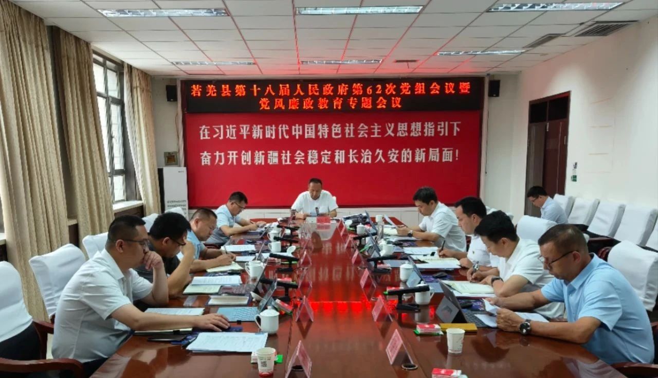 7月22日,若羌县第十八届人民政府召开第62次党组会议暨党风廉政教育专题会议。县委副书记、县长热依木江·克里木主持会议,并就重点工作进行安排部署。