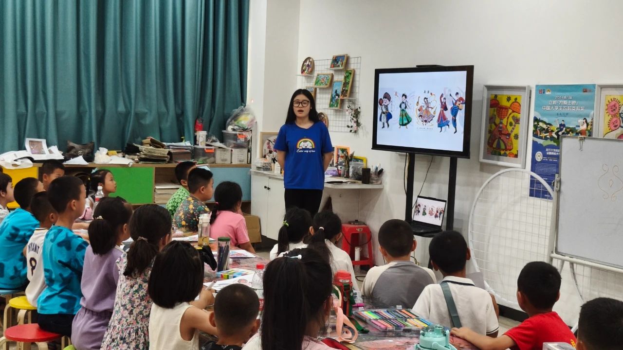 中央美术学院夏季风支教团队教师姜笑寒说:“我们的课程设计紧密联系当地特色和乡土文化传承,旨在深化孩子们对本土文化的认知。例如,在探索美丽的艾德莱斯时,教师指导孩子们认识和研习新疆特色服饰的纹样;我们通过观看影片和亲自动手实践的方式,让孩子们沉浸于中华传统文化的魅力。此外,其他各类课程也巧妙融合了当地本土文化元素,使学生在绘画和手工制作的过程中,自然而然地学习并传承传统文化。”