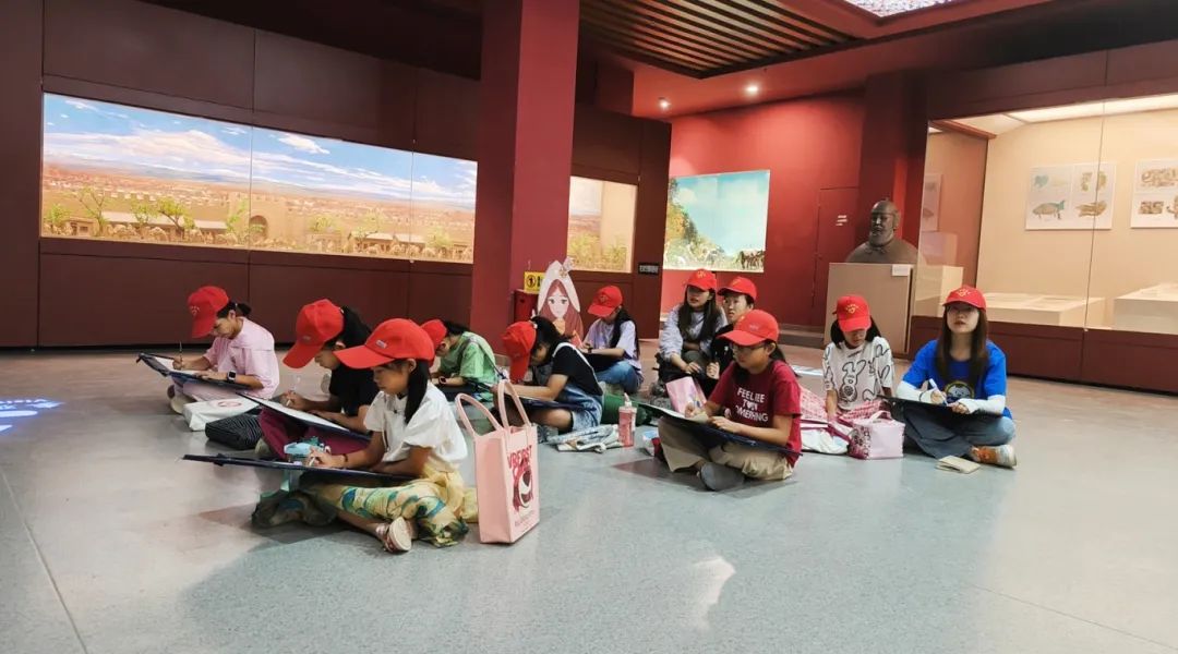 7月17日,在支教老师们的带领下,学生们有序地进入若羌县楼兰博物馆,参观并近距离欣赏文物,感受历史文化内涵,学生们认真聆听文物的简介和它背后的故事,用心观察文物精美奇特的造型。随后,学生们来到壁画墓前,拿起画笔,在老师们的指导下,勾线、涂改、描纹......一幅幅精美灵动的画作跃然纸上。
