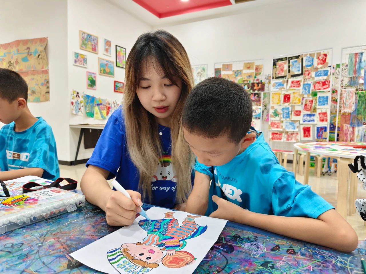 近日,中央美术学院“夏季风”和清华大学“薪传计划”大学生支教团队的11名大学生为若羌县的学生们开展美育课支教活动,点亮孩子们心中的“艺术梦想”,为他们提供了丰富多彩的假期“套餐”,陪伴孩子们度过一个快乐的假期。