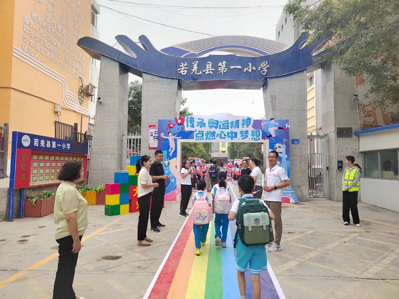 “新学期,新起点,若羌县第一小学的全体师生,将以饱满的热情和昂扬的斗志,踏上新的征程,相信在大家的共同努力下学校必将迎来更加辉煌的明天。”若羌县第一小学德育主任杜阳飞说道。