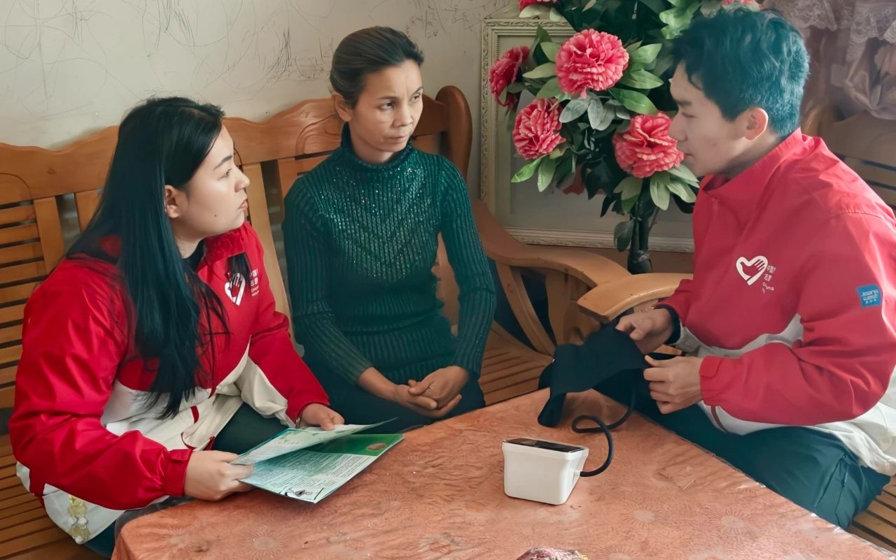 在吾塔木乡,志愿者们组成了一支爱心医疗小队。带着专业的便携式医疗设备,前往群众家中,开展爱心义诊志愿服务活动,帮助群众测量血压,血糖。