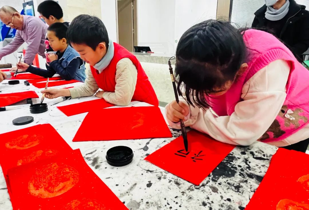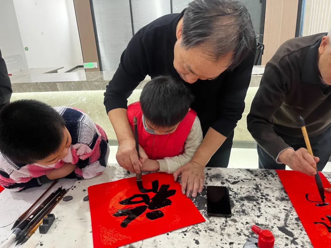 活动中,来自书法协会的老师和书法培训班的小朋友们一起现场写春联、写“福”字,共同把新春的美好祝愿送给来往的群众。大家笔走龙蛇,不一会写好的春联和“福”字就铺满了空地,引得现场群众纷纷驻足欣赏。