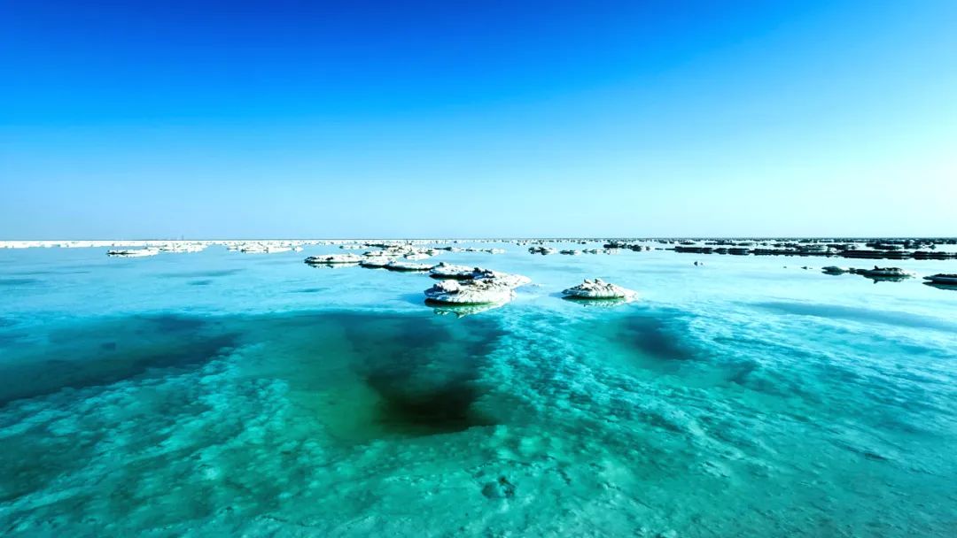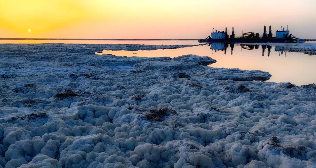 3月初,随着气温的回升,新疆巴音郭楞蒙古自治州若羌县境内的罗布泊腹地,一望无垠的盐湖呈现出独特的蓝绿色,一艘艘现代化采盐船在盐田里缓缓行驶,由于湖面结晶盐层上卤水的反射形成镜面效果,水天倒映,美不胜收。