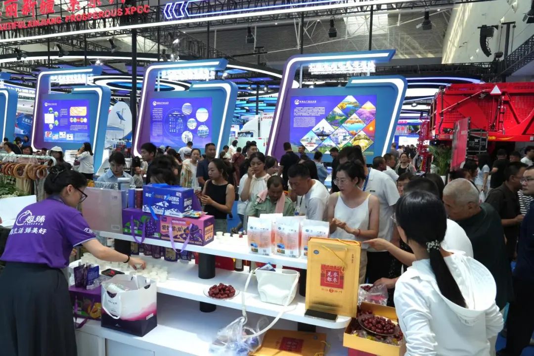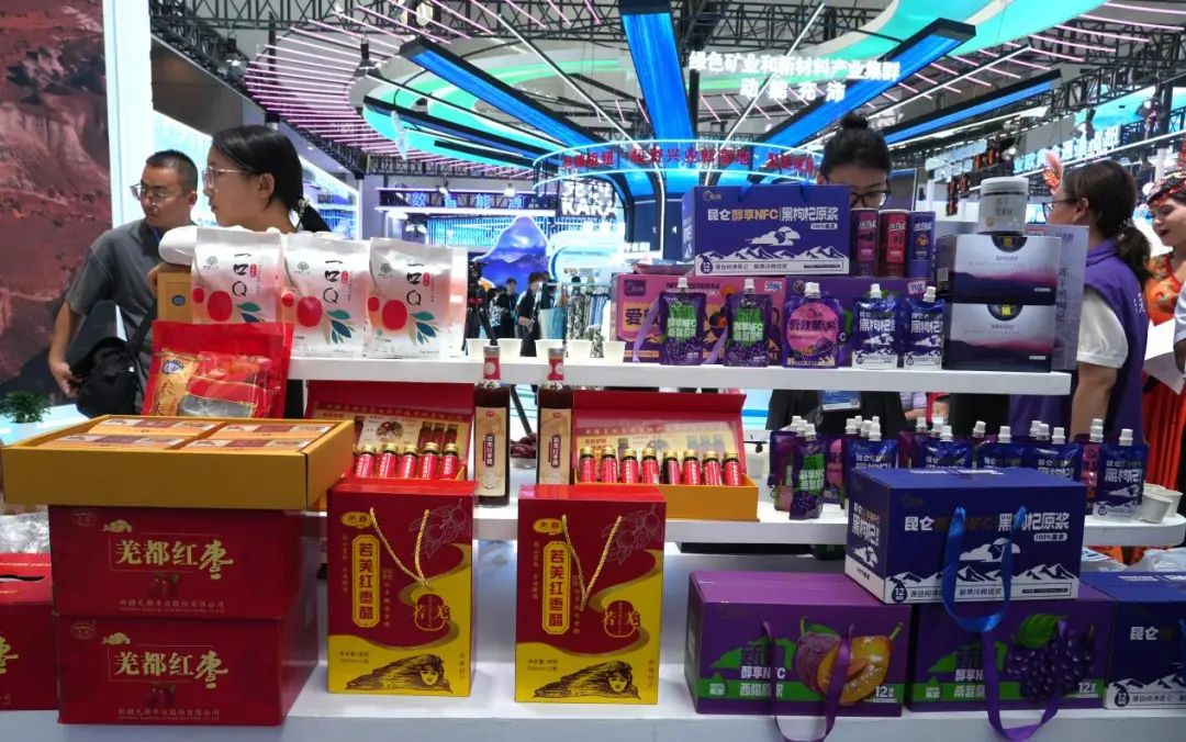 本次商博会若羌县携若羌红枣、红枣醋、葛红肽饮品和黑枸杞原浆等特色农产品参展,以其独特的品质和浓郁的地域特色,迅速成为展会上的焦点,吸引了众多国内外客商的目光。