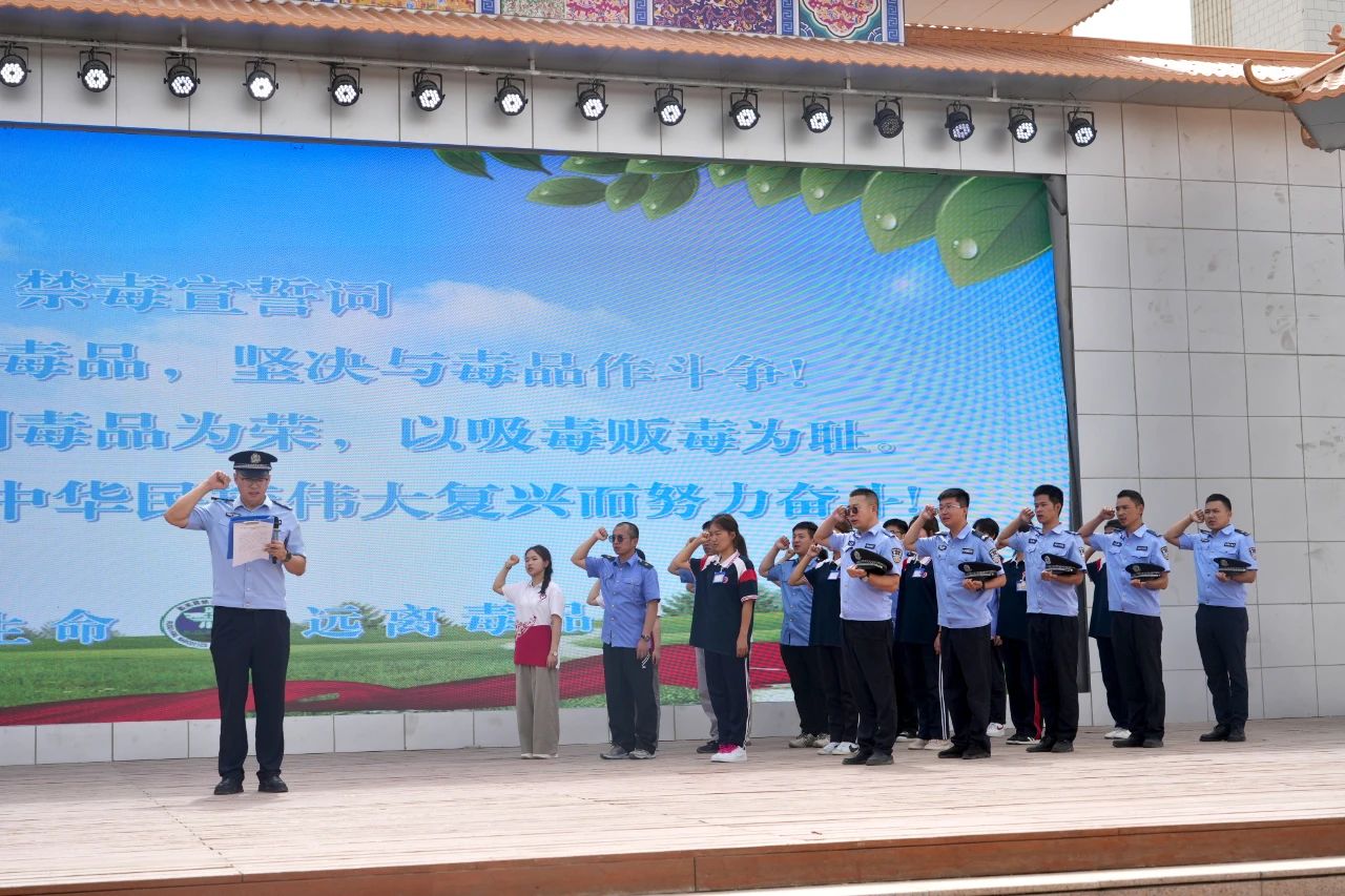 活动在热情洋溢的开场舞《红红火火新时代》中拉开帷幕,欢快的舞步点燃了现场气氛,也寓意着全民共建无毒社会的蓬勃希望。随后,全体参与者进行庄严的禁毒宣誓,铿锵有力的誓言表达了对毒品“零容忍”的坚定决心。