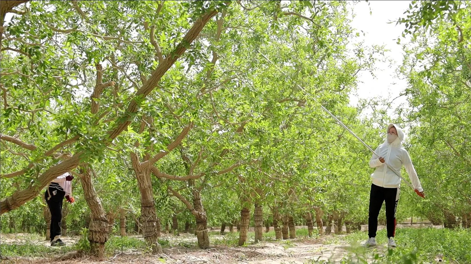 据悉,专业技术人员依托智慧枣园物联网系统实时数据,动态调整管护方案,指导枣农们合理浇灌,精准施肥,绿色防控,为红枣提质增效打好基础。