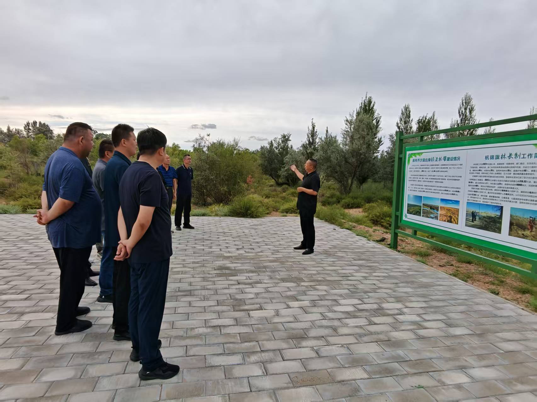 考察组先后深入宁夏银川市、中卫市及内蒙古阿拉善左旗、鄂尔多斯市等防沙治沙重点区域。通过实地观摩、座谈交流、听取介绍、现场咨询等方式,重点考察学习了宁夏中卫享誉世界的“麦草方格”固沙技术及其迭代应用、沙坡头“五带一体”铁路防风固沙体系、盐池县光伏牧场工程,以及内蒙古腾格里沙漠锁边生态基地、库布齐沙漠北缘锁边林草带中段沙化土地综合治理项目、重庆辰砂生态科技公司杭锦旗“沙漠土壤化”项目、朔方新能源大基地项目及防沙治沙和风电光伏一体化工程和蒙西基地库布其200万千瓦光伏治沙项目,详细了解各地域生态产业项目方面的经验做法。