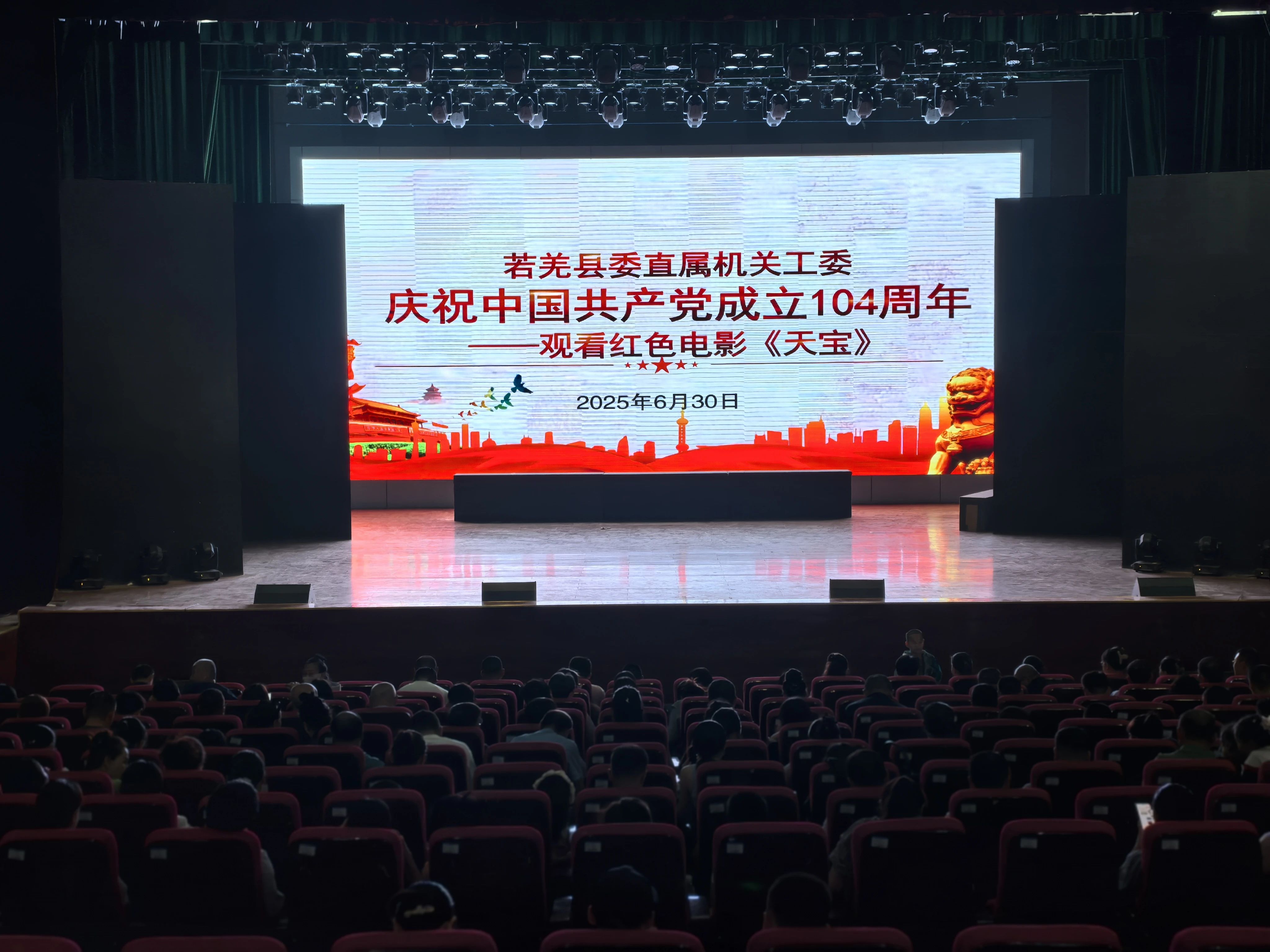 为庆祝中国共产党成立104周年,回顾党的光辉历程,继承和发扬党的优良传统和作风。6月30日,若羌县委直属机关工委组织所属党组织500余名党员观看党史电影《天宝》。