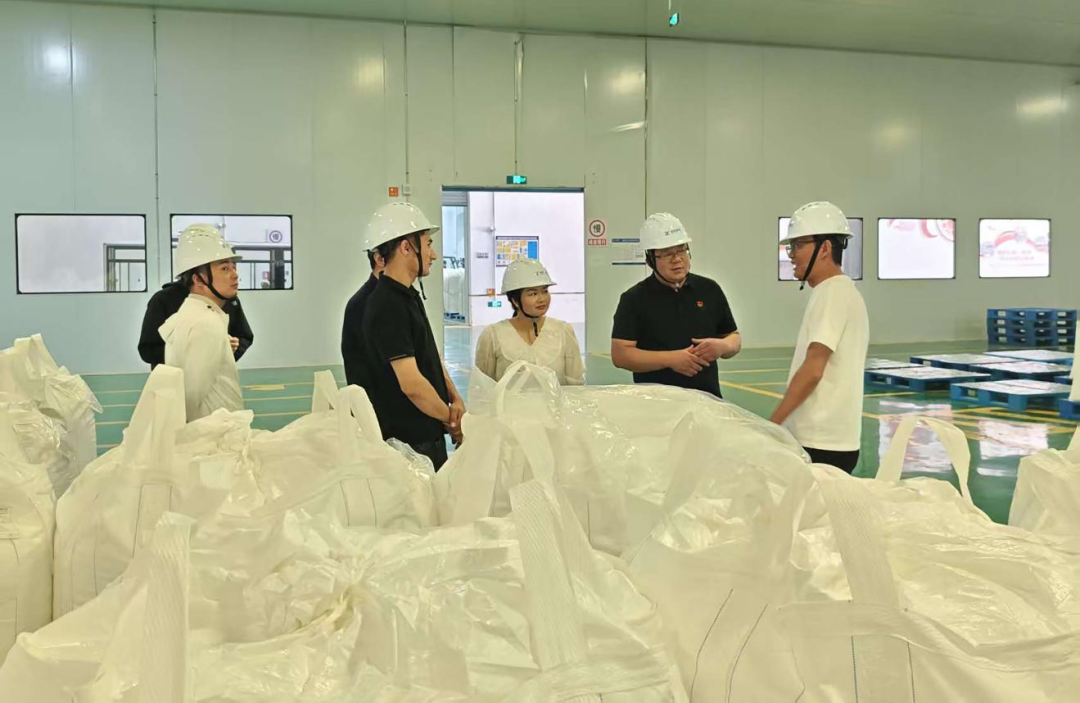 若羌县商工局党支部坚持把党旗插在改革发展第一线,创新打造“党建聚合力·兴企助发展”品牌。图为5月24日,该局“党员项目攻坚专班”走进新疆西海新能源新材料有限公司了解企业所需。王亨摄