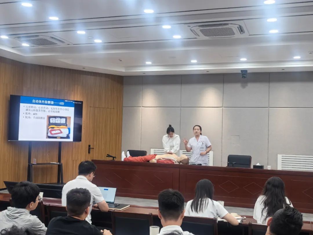 培训现场,专家团队围绕心肺复苏、创伤救护、AED使用等核心急救技能,通过生动的现场示范与细致讲解,手把手指导员工掌握“黄金四分钟”抢救要领。从判断患者意识、开放气道,到规范实施胸外按压,再到AED设备的正确使用流程,每个环节都进行了详细演示与实操指导,切实将健康服务延伸至企业一线,打通企业健康服务“最后一公里”,为企业高质量发展筑牢安全屏障。