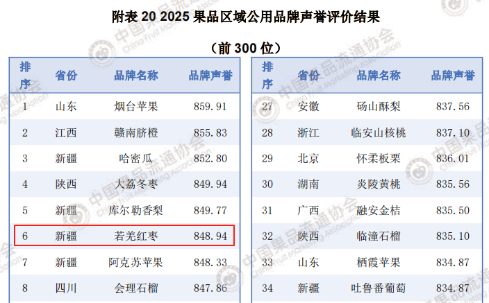 此次入选全国果业品牌建设典型案例,是对若羌红枣品牌战略与实践成果的充分肯定。国家相关部门在案例汇编中特别指出,若羌红枣的成功经验为全国特色农产品品牌化发展提供了可复制、可推广的范例,尤其在标准化生产、品牌营销与产业融合方面具有重要示范意义。依托卓越的品质优势和持续的品牌建设,“若羌红枣”品牌价值持续攀升,在2025中国果品区域公用品牌价值榜中以51.49亿元位列第21位,在品牌声誉榜中以848.94分高居第六名,品牌影响力和市场竞争力不断增强。