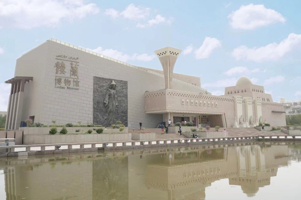 楼兰博物馆位于若羌县幸福路团结文化广场,是若羌县2009年的八大民生工程之一,也是反映楼兰历史、若羌现实的标志性建筑。该馆占地面积13762平方米,建筑面积4688平方米,总投资2800万元。经过历时2年时间紧张建设,于2011年5月3日正式对外免费开放,展厅一次可容纳1000人参观。2017年5月投入1800多万元对楼兰博物馆4688㎡展厅进行整体布展改造提升,楼兰博物馆这次布展提升多处增加了电子设备,收集整理了多年来的考古视频资料每天进行循环播放,馆内做了多个场景还原使参观的游客在参观过程中可以更直观的感受到当时的历史,馆内新增了展览的文物种类,比如木器,石器,玉器,丰富了展览内容,更加多层次,多方式,多元化地体现了楼兰文化。整体布展提升运用高科技、立体、宏观、多角度、多形式展示展现楼兰文化的博大与宽容,真正做到了用文物说话、让历史发声。楼兰博物馆集“楼兰”文物整理展示、挖掘保护于一体,具有强烈的古楼兰建筑特色,2024年游客接待量达28万人。馆内分设史前时期展示厅、楼兰历史文化展示厅、丝路楼兰·秘境若羌展示厅、锦绣楼兰织锦展、百年守护·历史有声展示厅,馆内展览内容形式多样,史料详实,设计新颖。