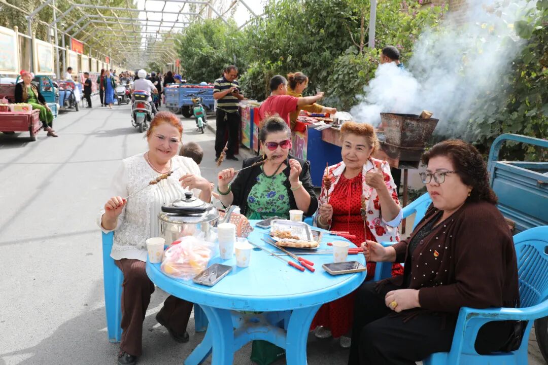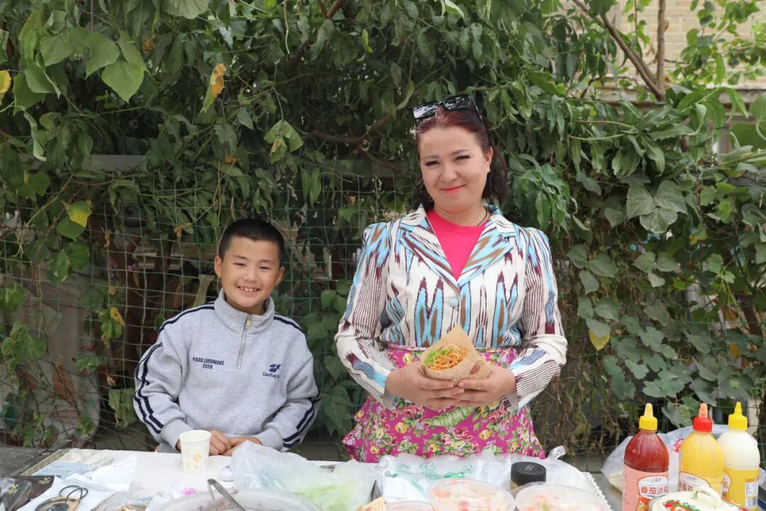 巴扎集市内热闹非凡,各类摊位错落有致、品类丰富。新疆特色美食区里,刚出炉的烤包子皮薄馅足,一口下去浓郁肉香满溢口腔;红柳烤肉香气扑鼻,鲜嫩肉块裹着红柳枝的独特清香,格外诱人。日用百货与本地农产品区中,生活好物琳琅满目,新鲜果蔬色泽鲜亮,令人目不暇接。理论宣讲区气氛浓厚,各族群众神情专注地学习理论知识,宣讲结束后,工作人员还为大家送上了精美礼品。
