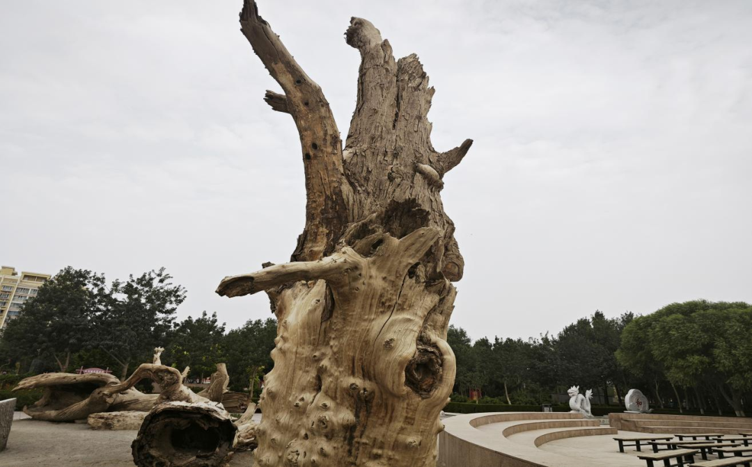 屹立在若羌县楼兰博物馆前的三千年胡杨。郭城 摄