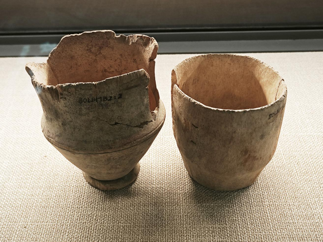 2016年在若羌县楼兰故城采集的木杯,其形制融合了中原与西域风格,反映了汉晋时期丝绸之路的文化交融,是楼兰社会生活的实物见证。郭城 摄