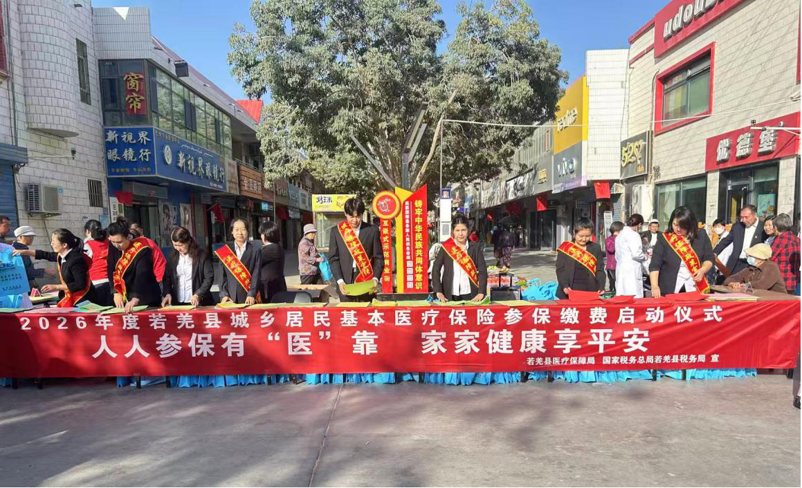 为全面推进我县2026年度城乡居民参保工作,2025年9月28日上午,若羌县医保局联合县卫健和定点医药机构在县商业街举行以“人人参保有‘医’靠,家家健康享平安”为主题的全民参保集中缴费宣传活动暨启动仪式。