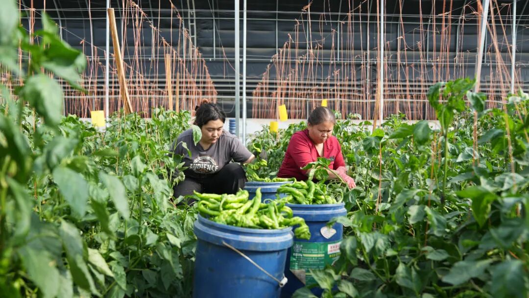 “周边的商超、菜店老板都是主动上门采购的。接下来,我们会严把采摘、运输各个环节,保证把最好的辣椒送到客户手里。”李兵信心满满地说。据他介绍,目前,基地所有工人都在全力采收,每天能保证两吨的辣椒供应量,为周边市场提供了充足的新鲜蔬菜保障。这些辣椒从选种、施肥到日常管理,都严格遵循科学流程。得益于精细化的培育,这里的辣椒皮薄肉厚,口感上乘,不仅市场反响极佳,周边群众吃了也赞不绝口。