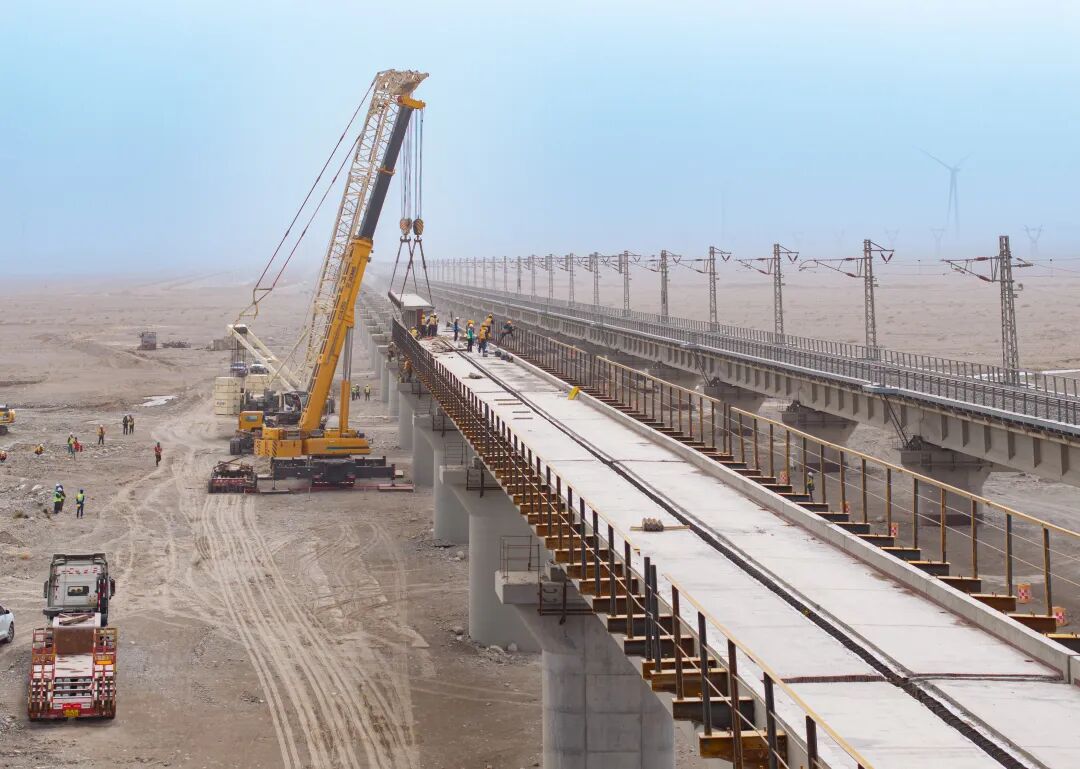 精准铺轨:于茫茫沙海间完成“钢铁刺绣”