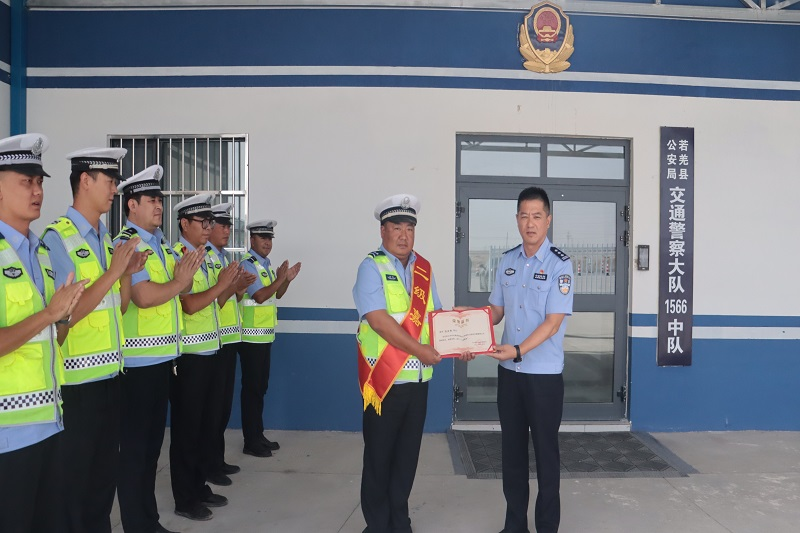 “这份荣誉不是我一个人的,离不开领导的悉心指导,更离不开同事们的并肩支持!”接过证书的冯玉林同志难掩激动之情,语气中满是感恩。他坦言,局党委把荣誉送到执勤岗位的举动,比任何表彰都更让他暖心、更受鼓舞:“今后我一定把这份关怀转化为扎根一线的工作动力,带着更强烈的使命感守好每一段路、护好每一次出行,用实实在在的行动守护道路畅通、保障群众安全,为若羌公安事业高质量发展多扛一份责、多尽一份力!”