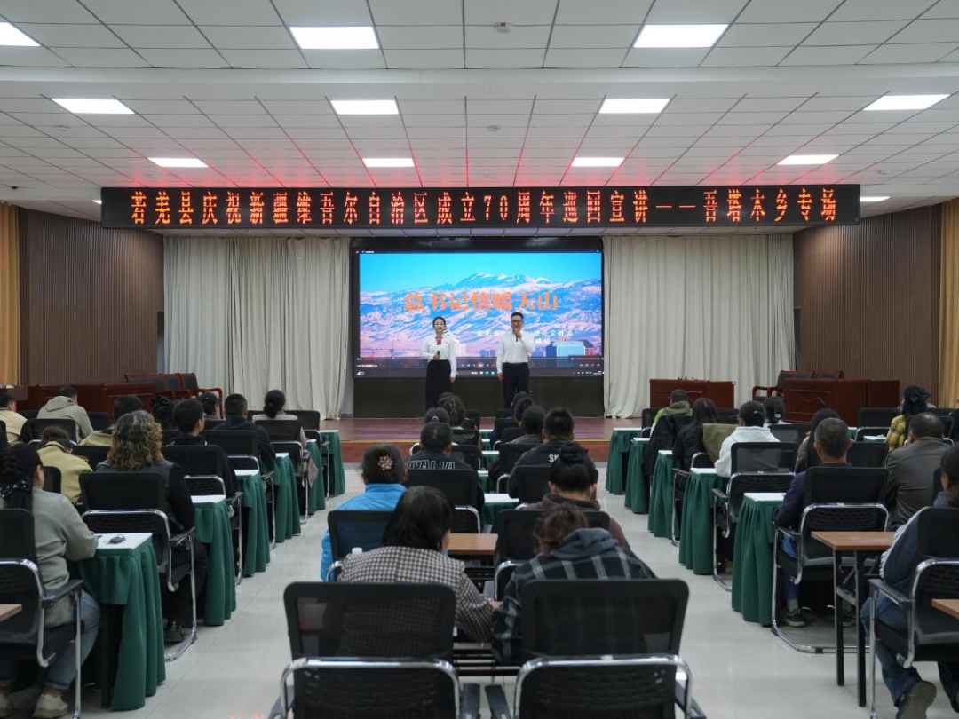 为庆祝新疆维吾尔自治区成立70周年,若羌县紧紧围绕“砥砺奋进七十载天山南北谱华章”主题,精心组织、全面启动巡回宣讲活动。宣讲立足若羌实际,覆盖广泛、内容扎实、形式多样,不仅在县域内各乡镇深入开展,更走进党群、经济、住建交通、医疗卫生、教育、纪检监察等系统,以及园区重点企业和国有企业,将党的声音与时代发展的壮阔画卷传递到基层一线,在全县营造出回顾辉煌成就、凝聚奋进力量的浓厚氛围。