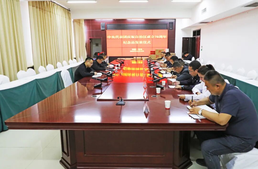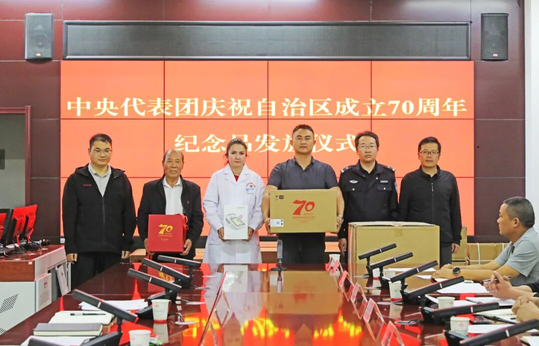 近日,若羌县举行中央代表团庆祝新疆维吾尔自治区成立70周年纪念品发放仪式,一份份承载着深情厚谊的纪念品被陆续发放到公安干警、医护人员、教育工作者、“四老”人员及驻村工作队代表手中。