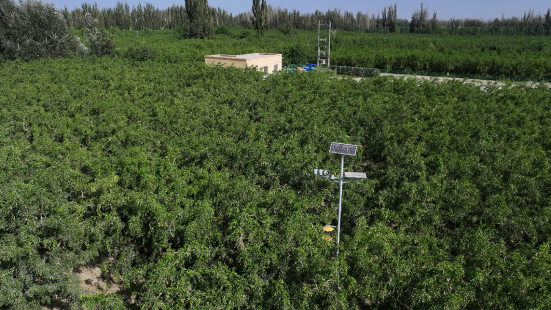 8月15日,若羌县铁干里克镇红枣示范基地的物联网监测系统。张达 摄