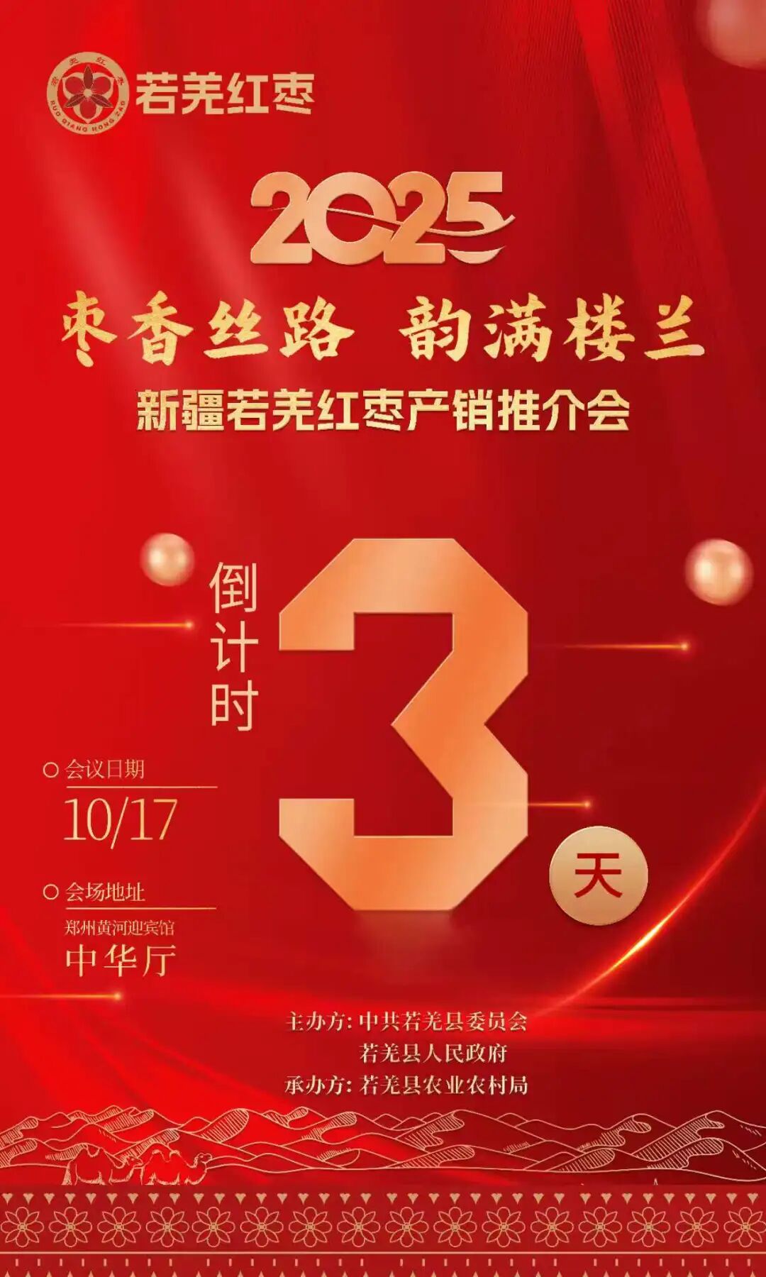 此次大会,将汇聚来自全国各地的红枣产业专家、红枣企业代表、经销商代表、企业家以及政府相关部门负责人等,共同探讨红枣产业的发展现状与未来趋势。会议期间,将举办若羌红枣展示体验、红枣产销对接会、若羌红枣推介等一系列丰富多彩的活动,旨在搭建一个交流与合作的平台,塑造红枣品牌,深化产销合作,拓宽市场渠道,增强市场竞争力和可持续发展能力!