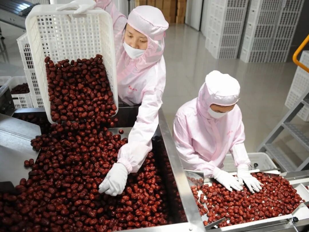作为全国优质红枣核心产区,若羌县拥有得天独厚的光热资源与纯净生态环境,为红枣产业发展奠定坚实基础。截至目前,全县红枣种植面积达23.38万亩,2024年总产量达12.62万吨。多年来,若羌县始终坚守“品质立牌、科技强牌、文化兴牌”发展理念,通过推行标准化种植、实现绿色有机认证、建立全程质量追溯体系等举措,推动红枣产业高质量发展,若羌县先后斩获《中国红枣之乡》《中国红枣产业龙头县》《中国特色农产品优势区》等多项国家级荣誉。“若羌红枣”已通过国家“地理产品证明商标”“地理标志产品保护”认证,荣获“中国驰名商标”。