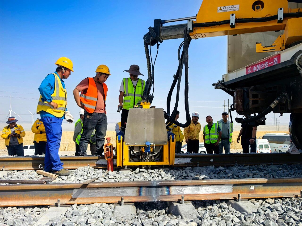截至目前,罗若铁路米兰至DK170+850段已全面开展焊轨放散作业。现场采用移动式闪光焊机将500米长钢轨逐节焊接,并通过移动式钢轨中频正火作业车对焊接头进行二次加热及实时温度监测,以提升焊接质量。