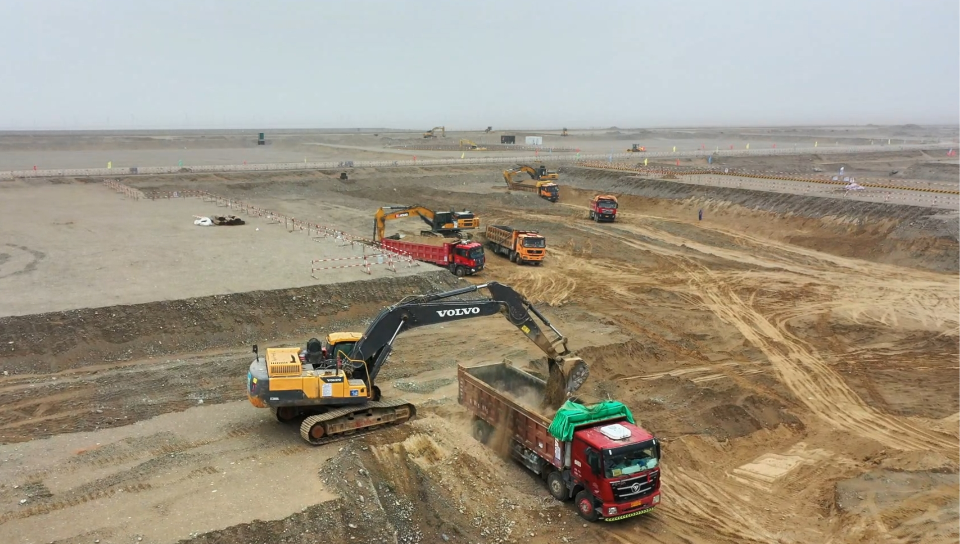 在三峡南疆塔克拉玛干沙漠新能源基地6×66万千瓦煤电项目现场,600多名建设者和百余台大型机械设备正在紧张作业,各项建设工作如火如荼向前推进。