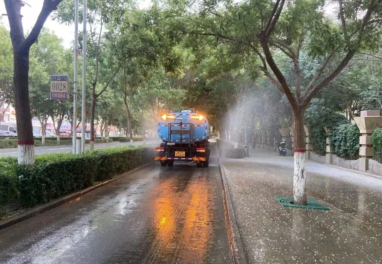 10月4日一早,洒水车便在进行冲洗街道作业,环卫工人艾姆拉·罕孜身着环卫服,手上拿着扫帚,开始了一天的忙碌。“国庆期间游客多,垃圾量比平时增加不少,我们得提前上岗,才能赶在居民和游客出门前把街道打扫干净。”艾姆拉·罕孜一边挥动扫帚,一边说道。