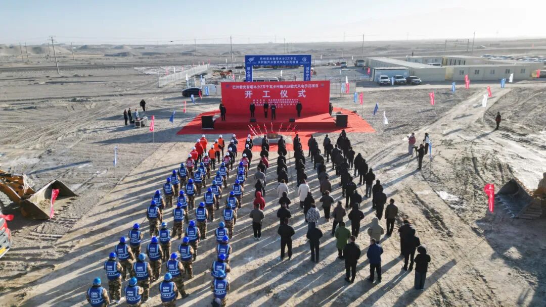 11月24日,巴州若羌吾塔木乡2万千瓦乡村振兴分散式风电示范项目举行开工仪式。