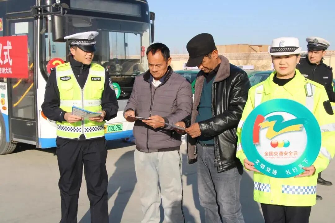 12月2日是第十四个全国交通安全日,今年活动的主题是“文明交通礼行天下”。12月1日,由若羌县交通运输局、农业农村局、公安局交通管理大队联合组织的全国交通安全日宣传活动在县客运站举行,全方位普及交通安全知识,保障守护群众出行安全。