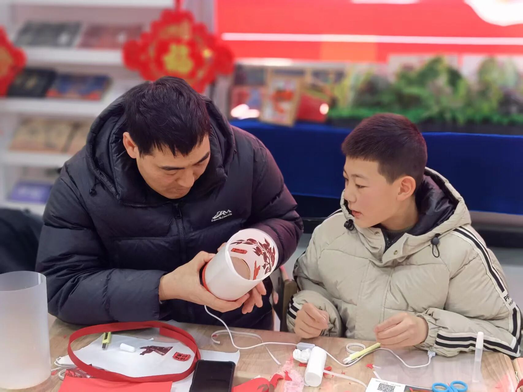 手工制作环节将现场氛围推向高潮。在工作人员示范指导下,大家领取马灯材料包,依次完成裁剪、拼接、组装、装饰等步骤。孩子们发挥奇思妙想,与家长默契配合,精心勾勒骏马图案、点缀新春纹样,一盏盏造型别致、寓意吉祥的马年花灯在手中次第成型。夜灯以“马”为核心元素,承载着“马到成功、策马扬鞭”的美好祝愿,既锻炼了动手能力,又让大家沉浸式体验传统灯艺的独特魅力。