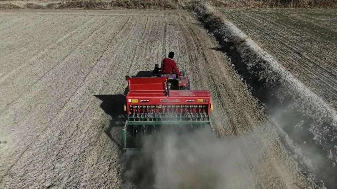 2月12日,若羌县2026年春小麦顶凌播种现场会在吾塔木乡尤勒滚艾日克村召开。田间地头农机轰鸣、农户忙碌,大家抢抓顶凌播种最佳窗口期,将小麦种子与肥料同步送入播种机,伴随着机械高效作业,一粒粒麦种被均匀播入土壤,一派繁忙有序的春耕景象。