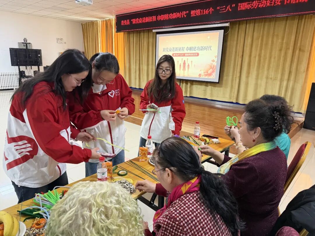 县团委以“巾帼绽芳华青春暖楼兰”为主题,策划开展系列活动,发起“我眼中的她”摄影征集,用镜头记录若羌女性坚守岗位、奋发向上的精神风貌;联合县委组织部,在文化社区开展手工绒花制作、节目展演、趣味互动等活动,退休女干部与各族群众欢聚一堂,欢声笑语中拉近干群距离;志愿者还走进校园、医院、政务大厅等场所,邀请各行业基层女性工作者送上节日祝福,让巾帼温情流淌全城。