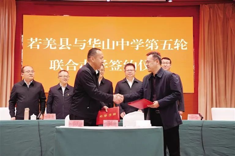 若羌县与兵团第二师华山中学签订第五轮联合办学协议。通讯员苏波摄