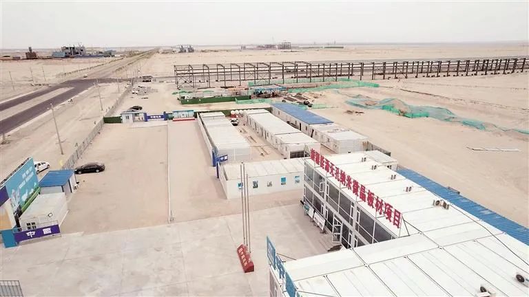近日,在若羌新材料产业园,无孔纳米微晶板材项目1号厂房已见雏形,附属配套单体建筑正在进行主体施工。