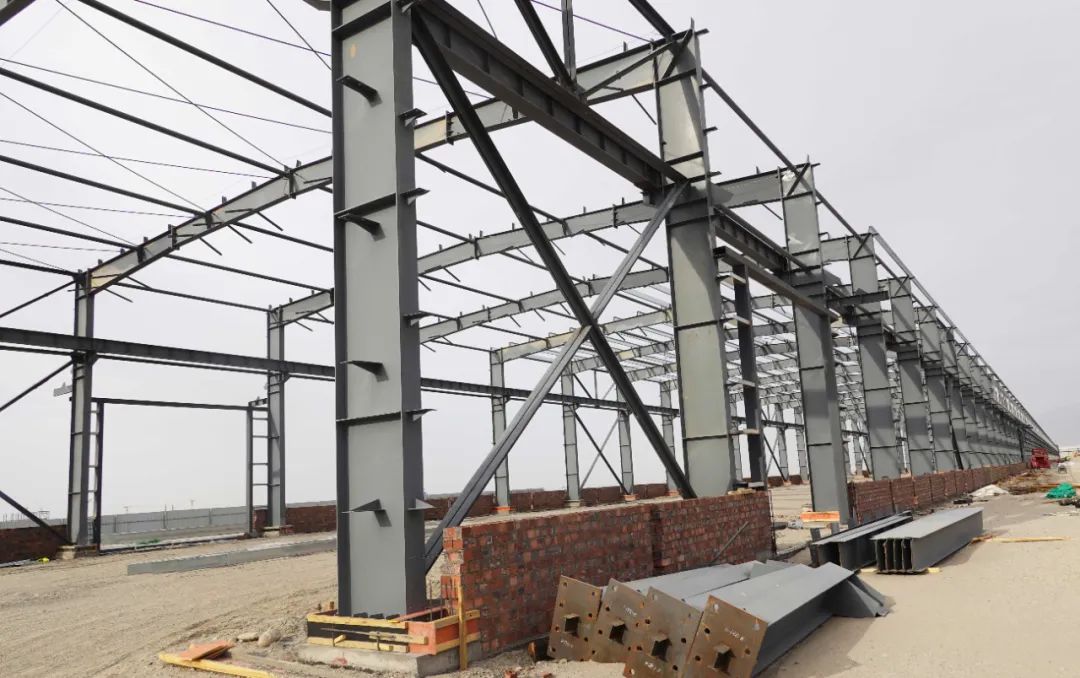 正在建设中的新疆能源无孔纳米微晶板材项目工地,钢结构的厂房拔地而起。