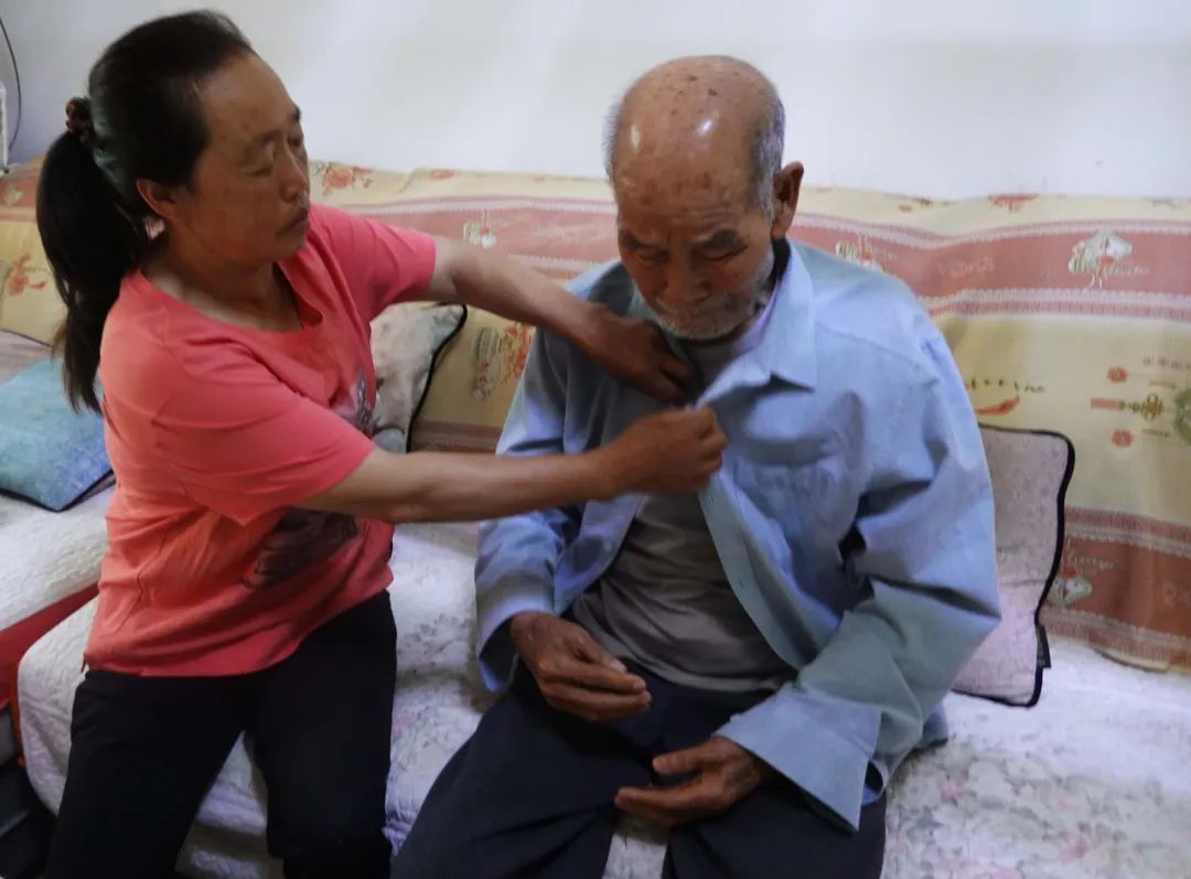 6月14日,忙了一天的王招弟回到家,给卧病在床的公公换了身干净衣裳。