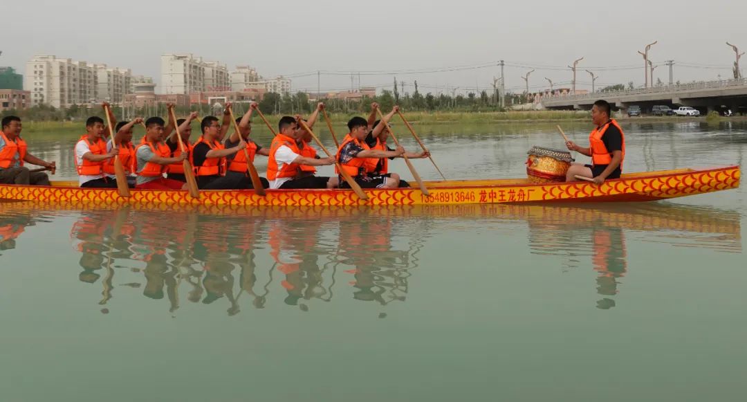 这是若羌县为举办第一届端午龙舟赛,正在训练的一个场景。若羌镇党委副书记王化江在现场指挥着紧张有序地训练。