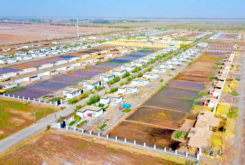 施工人员在昌吉市三工镇常胜村新建乡村道路。梁宏涛摄